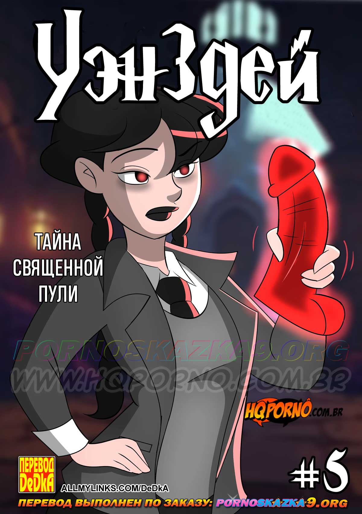 Читать далее 04 Дек 2025 13828 0Порно комикс «Уэнздей. Часть 5. Тайна священной пули.»