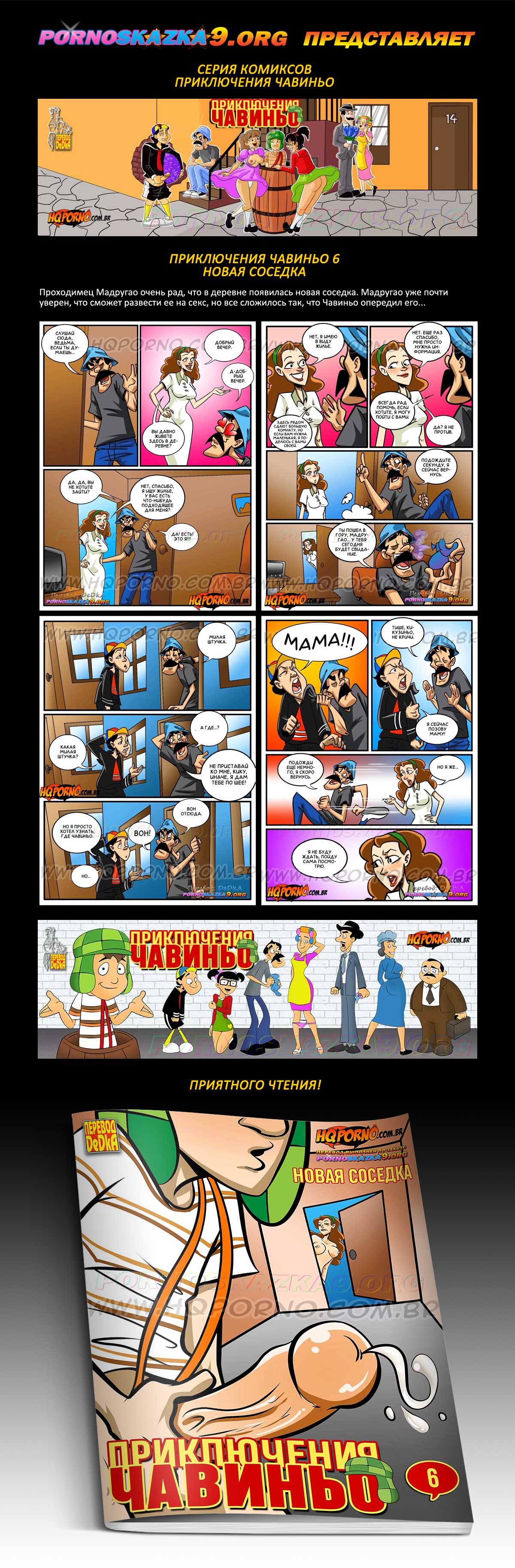 Порно комикс «Приключения Чавиньо. Часть 6. Новая соседка. Проходимец Мадругао очень рад, что в деревне появилась новая соседка. Мадругао уже почти уверен, что сможет развести ее на секс, но все сложилось так, что Чавиньо опередил его…